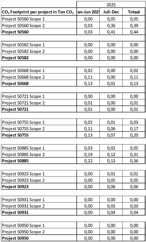 Tabel CO2 emissie vergelijking per jaar, zie Hya 905036 Work file CO2 footprint 2025